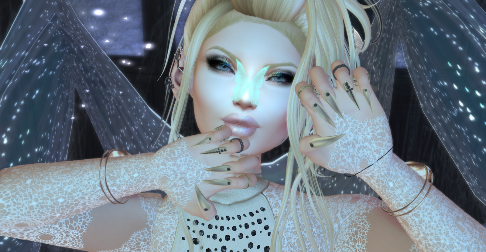 She was the most caring, loving and fearless butterfly of them all, Her wings were so big and felt of velvet cloth with silk lining, at night when the moon light hit them... they shined so bright that fireflies even swarmed around to watch her shine. She was the light of the forest til one long dark day, was so dark the forest started to die. She wept til she couldn't anymore til she lift her head to look out her window to see one star still twinkling bright, her eyes locked as she lifted from her flower bed and toward the star. Closer and closer she got to the star she noticed this wasn't just an ordinary star, the star was someone she was weeping over. The star whispered to her and the butterfly could feel herself becoming warm again. The star reached out almost as if the sun with a slight coolness was touching her cheek to wipe her fears away. The Butterfly felt complete again, but still held onto the sorrows making her stronger and wiser than before.